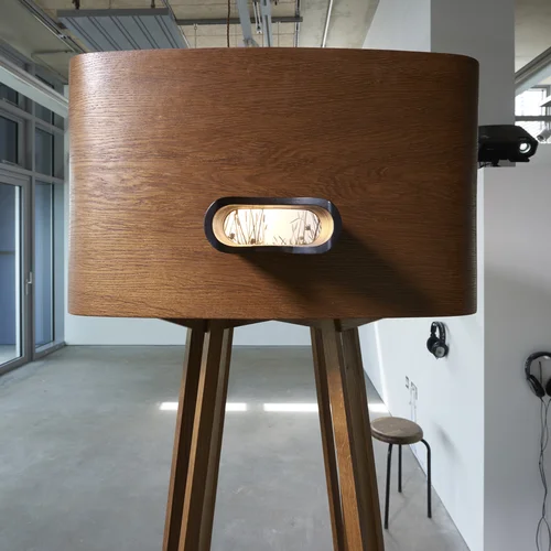 Digital Film Projection, Oak, Cotton and Brass Chair, Wood and Paper Screen, Dimensions variable.